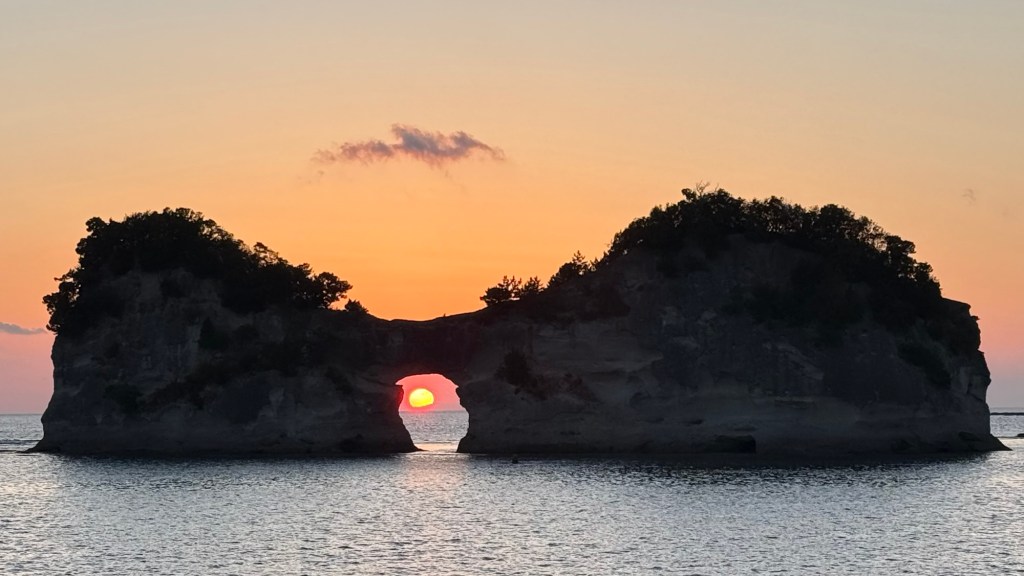 日本和歌山县白滨町円月島日落 sun setting through engetsu island, Shirahama Wakayama Japan 21.2.2026