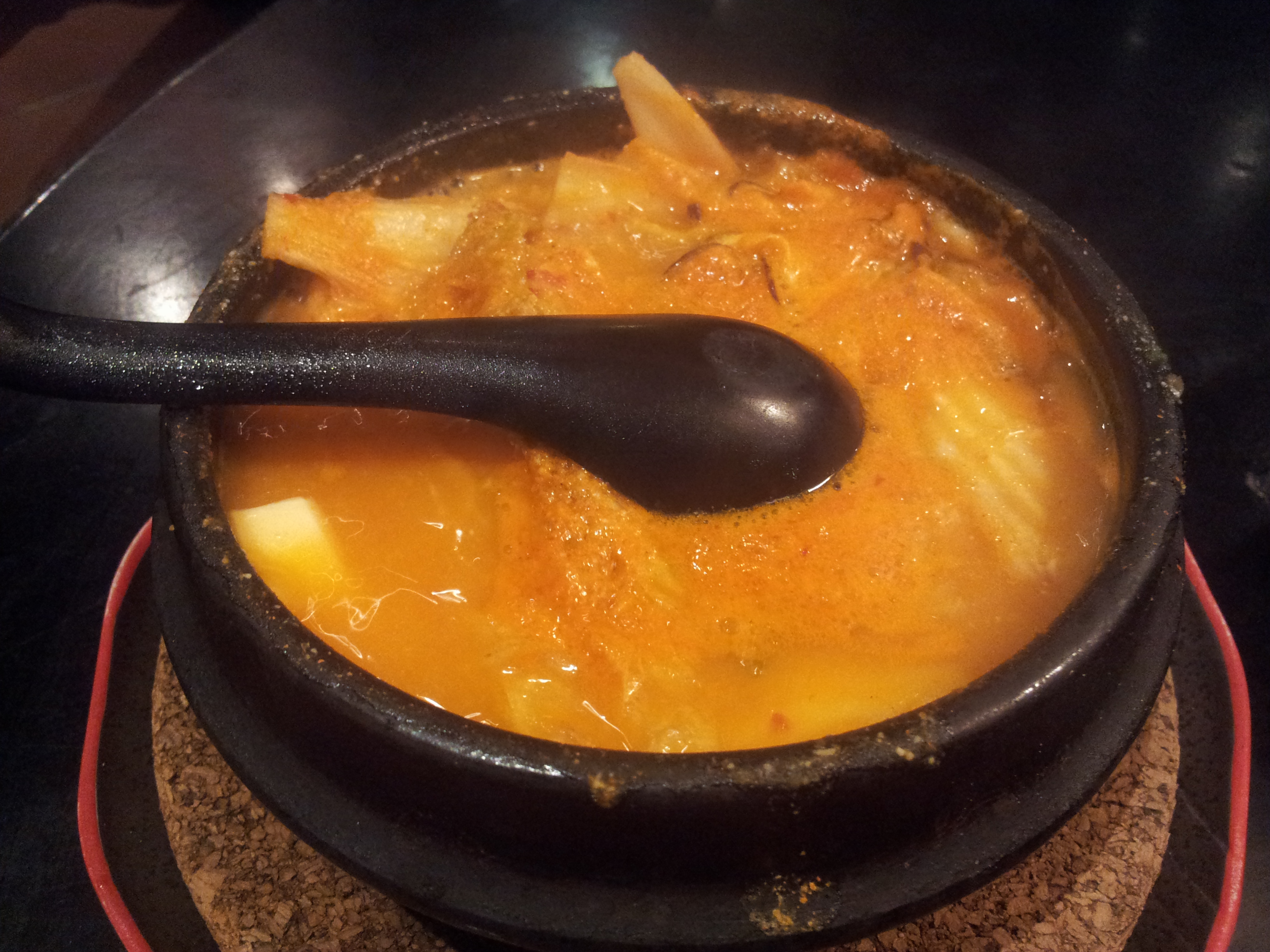 We also had the usual kimchi chigae. So far we liked this dish best here, even when compared with korean restaurants like Chang & Hyangtogol. The soup was very tasty and not too salty. There were a lot of kimchi & silky tofu but I would have liked a bit more of the belly pork. 🙂