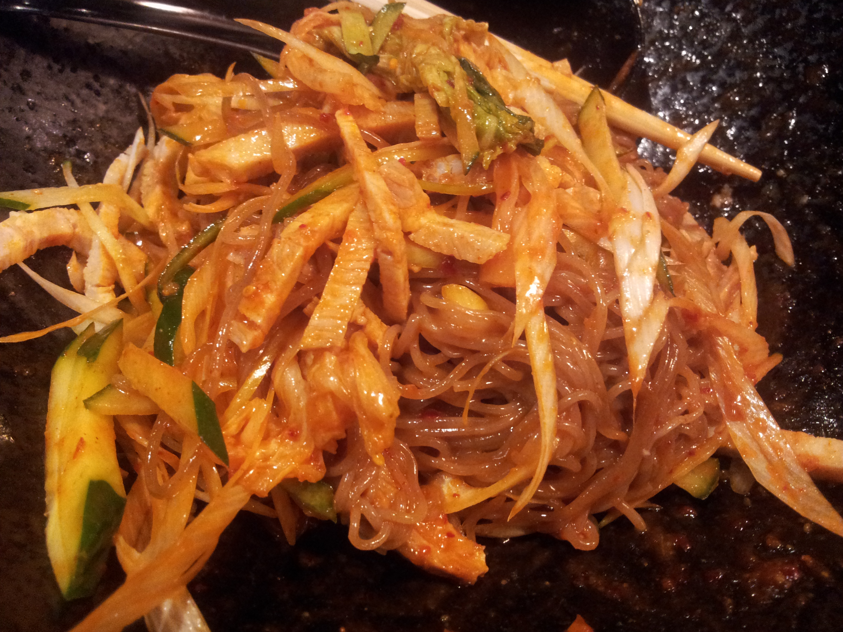 and we had the bibimen also. I liked very much the sweet spicy taste of gojuchang sauce mixed with the vegetables and some chicken meat and the nice texture of the noodles. 🙂