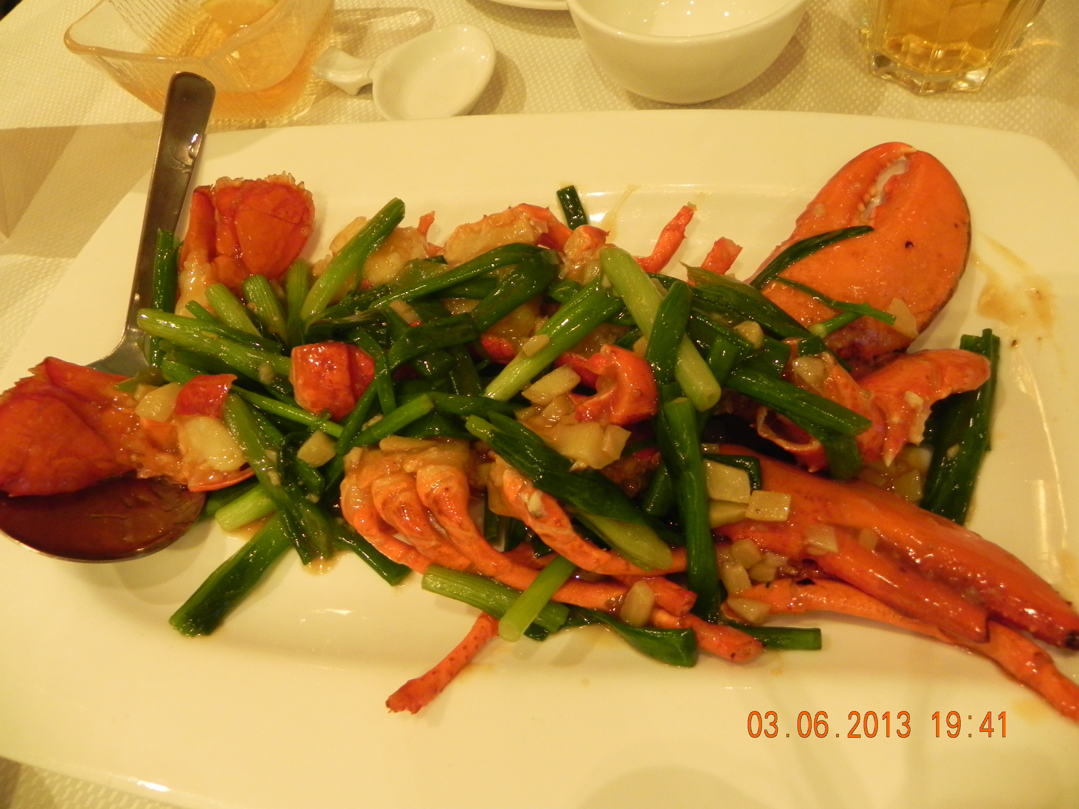 the menu said we start with a 姜葱 lobster with ginger & scallions – this was good standard as expected & I ate a lot of the scallions too. 🙂