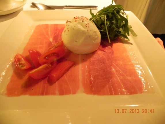 we had an amuse bouche, a lime cured tuna with avocado puree – good not great. 🙂