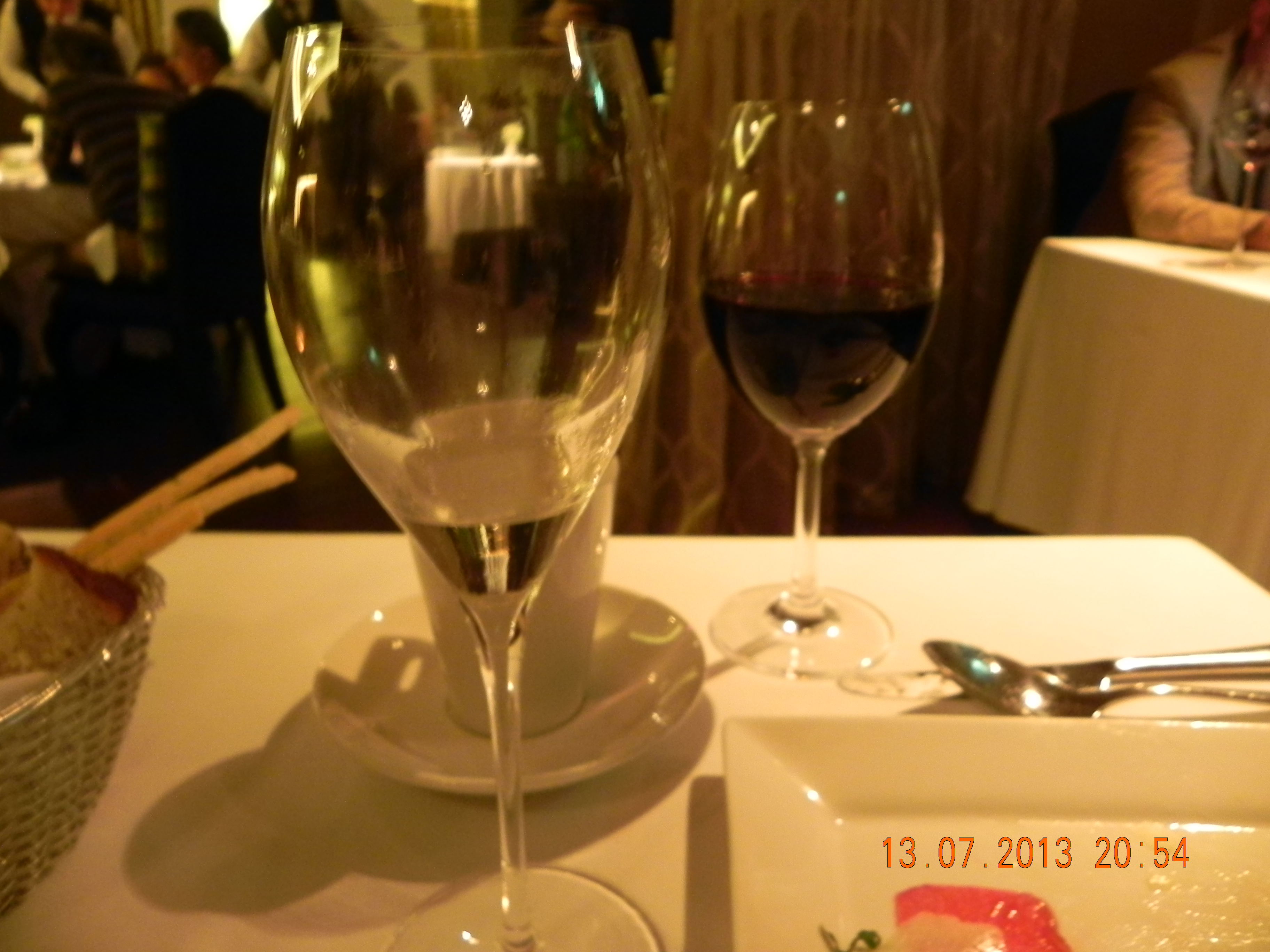 we had wanted to order the veal rack (we had a very good one at spizzico) but this was breaded & pan-fried so we gave up the idea. the waiter recommended venison medallion (tenderloin) rare. this was a superb choice – very tasty & tender & the dauphine pommes (crisp potato puffs) were excellent! 🙂
