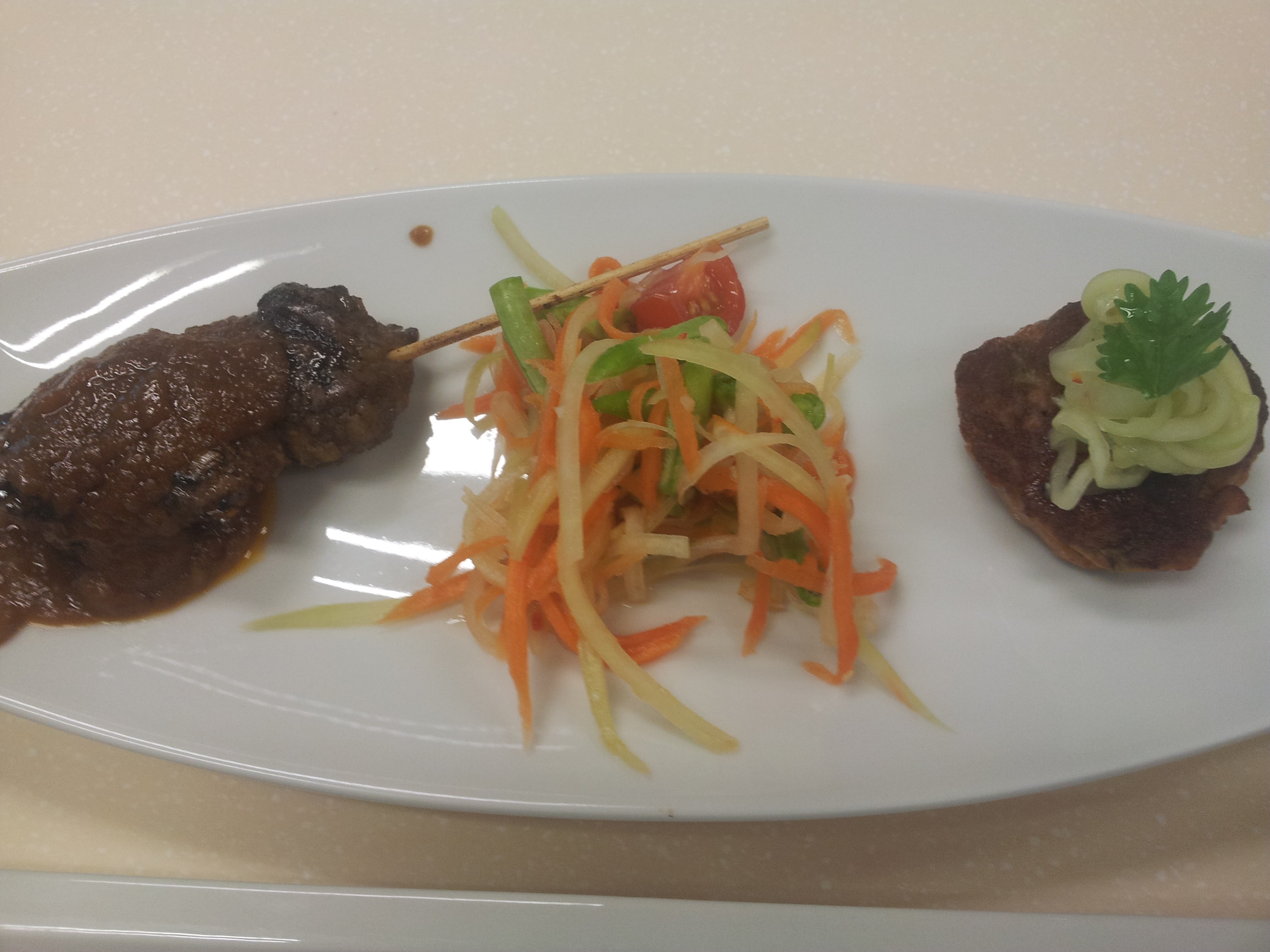 they served a coconut prawn fritter in thai chilli sauce before the set. The tomyam kung was quite ok – prawn was good tomyam not flavourful enough…the satay was ok not the best, pickles ok the crab cake or fish cake quite good. 🙂