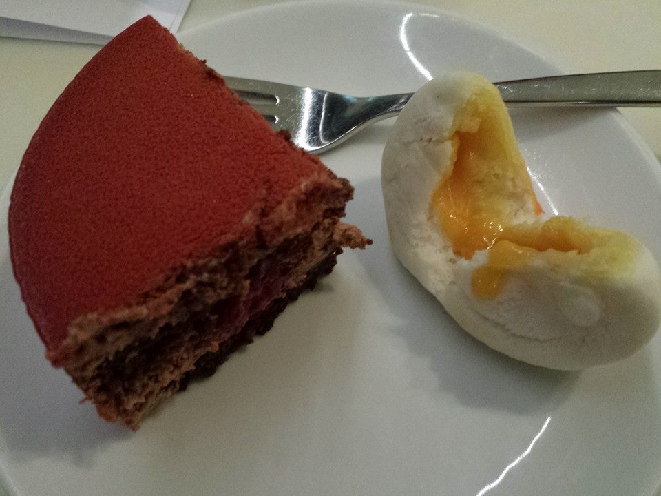 my friend also arranged for a very nice chocolate truffle birthday cake from swiss bake,and the restaurant made a great presentation with the longevity buns (which came as mini 流沙寿桃) on a plate with calligraphy of meaningful verses by their manager. the servers sand recited the verses & happy birthday song. service was excellent here – the server had advised us not to order more dishes earlier when my friend asked.