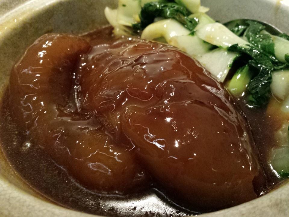 the best dish for the evening was the thick sea cucumbers. this was served in a very nice brown braising sauce which was served commonly with abalones or goose webs. the taste was exquisite, & i liked the jinbai (津白) as well.