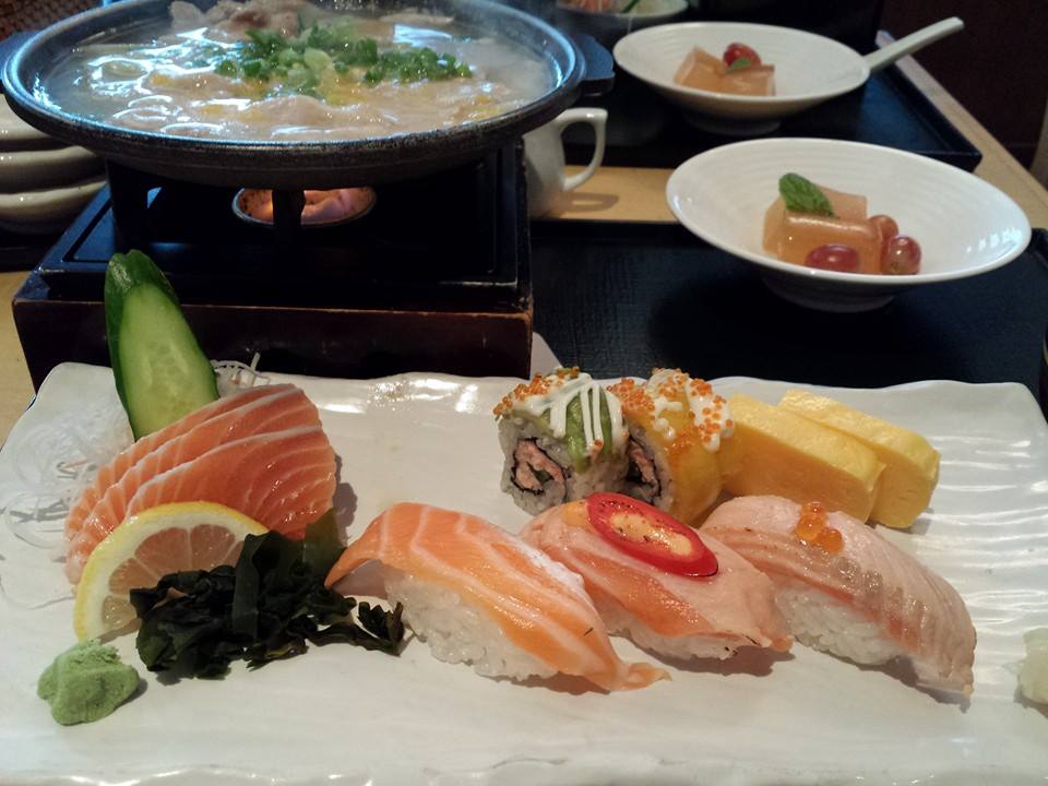 my daughter had the sushi A set (i think also S$21.80) which came with a pork nabe, again a good helping of shabu (thin sliced) pork which was good. the sushi looked ok but not great.