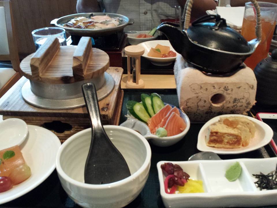 the beef don was excellent, very tasty & good helping of beef. i always like dons especially chirashi don anyway. 🙂 the seafood pot included 3 pieces of unagi (eel), 2 large cut of salmon & 1 scallop. it was tasty too. the salmon sashimi was excellent, better than those served at good buffet, of sushi counter standard. 🙂