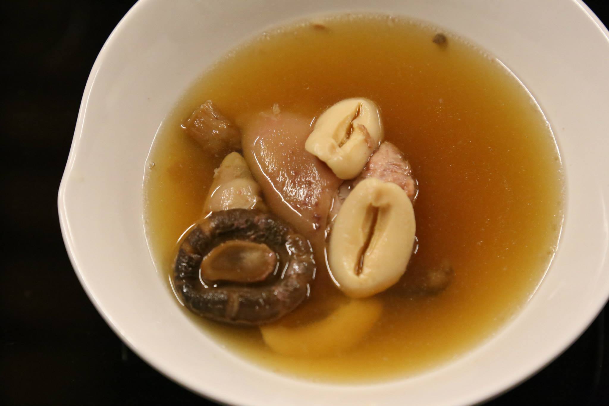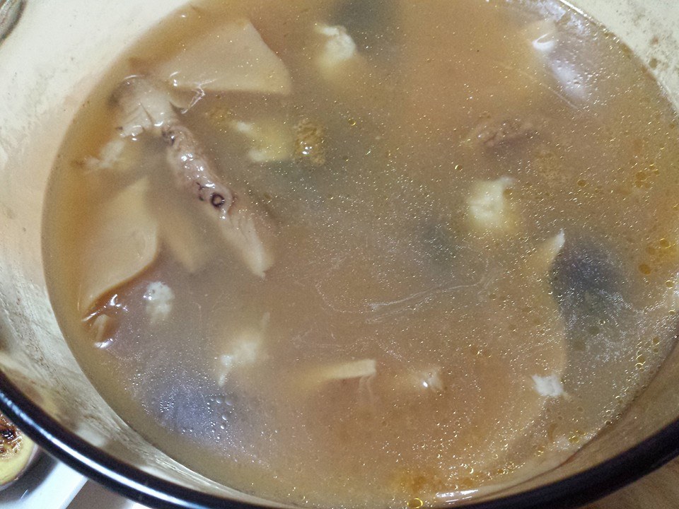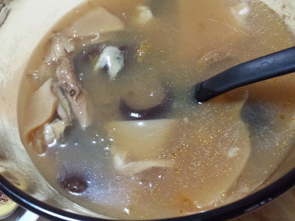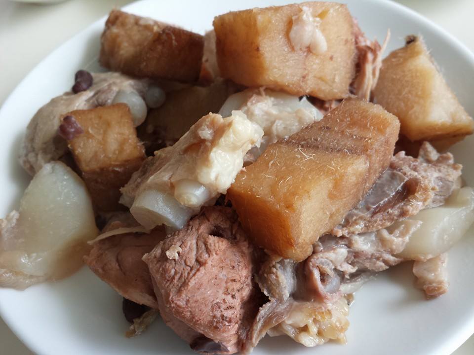 #2 next was the poor man’s buddha-jump-over-the-wall. the pig trotters was done overnight (about 7hrs) together with dried scallops & thick dried mushrooms & 2 chicken drumsticks (skin removed) for stock in a crockpot on low. the pig trotters were removed & put in the fridge to preserve the nice gelatinous texture. 🙂 the limpets & sea cucumbers were added just before serving, together with cut pieces of pig trotters. the soup was quite perfect at the time i was about to serve, but i was worried it was not enough for 8pax, so i added a bit of chicken stock. it was still good but i felt the flavour was not as intense, and actually there was enough soup w/o diluting it. it was kind of guesstimate thing as cooking for 8pax & practicing it once for a smaller serving did have some variations. 🙂