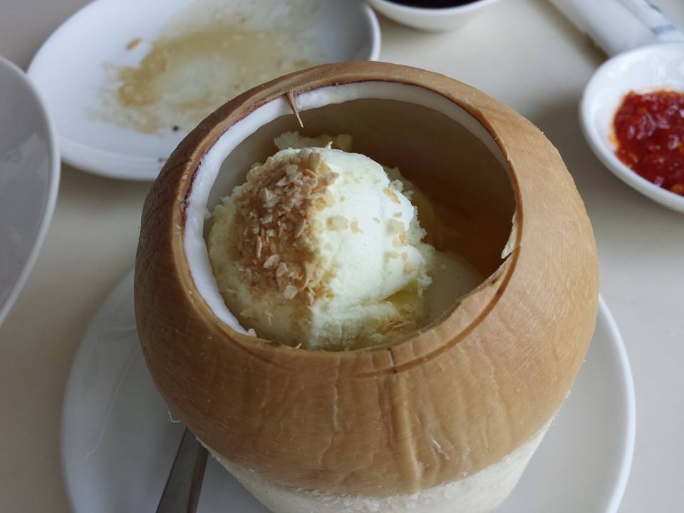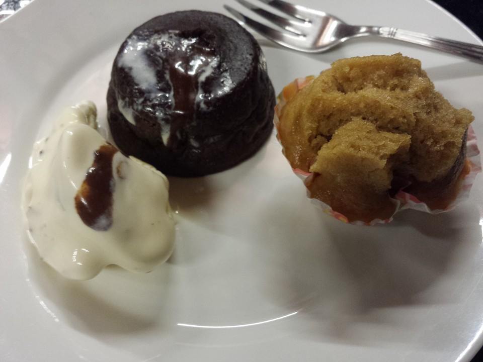 chocolate lava cake, toasted almond ice cream & “huat kueh”