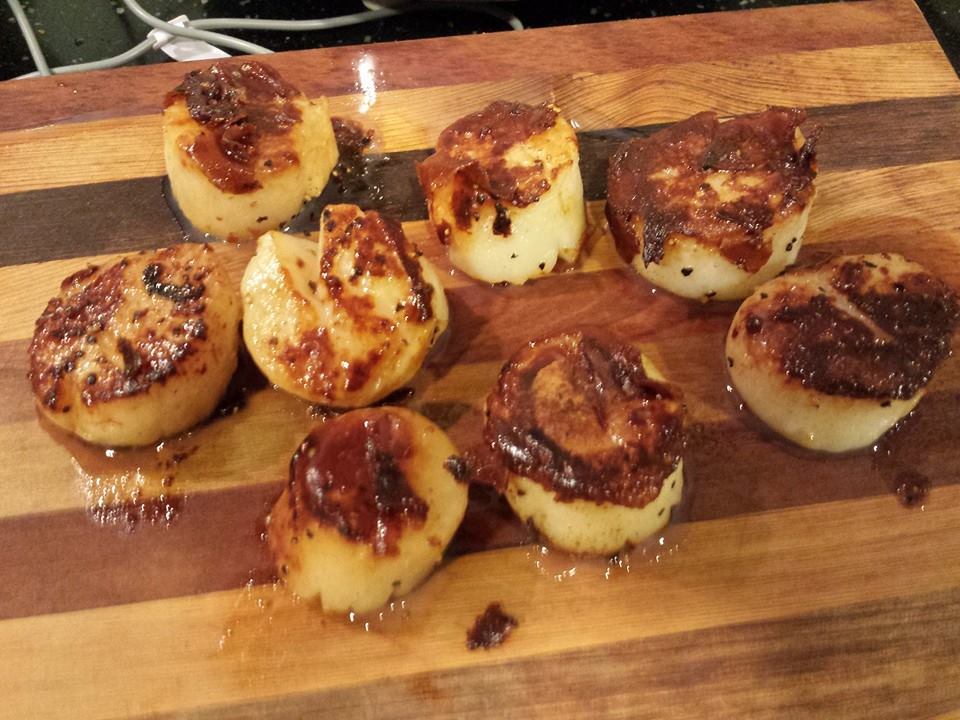 pan-grilled giant hokkaido scallops (some 2″ diameter)