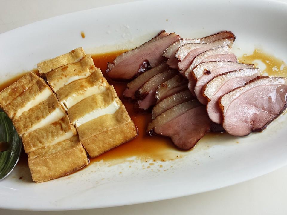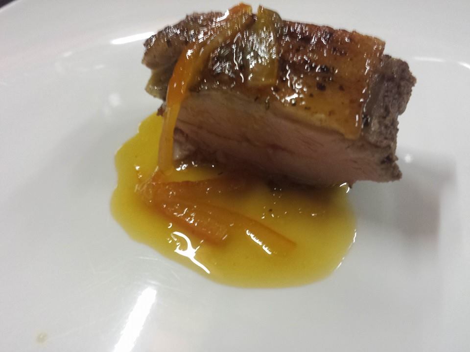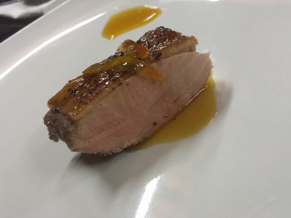 #3 the duck breast turned up supremely good! was brined in sugar & salt for 2 days & cooked at 60degC in the oven for 4hrs. the skin was then scored & i put on a pan at medium fire for 5mins to render out the fat to create a thin crispy skin. an important addition was orange sauce (see recipe here). i reduced this substantially to produce a thick caramelised nicely citrous sweet sauce. it went really well with the duck which was super tender. 🙂