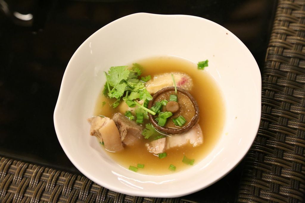 i added boiling water to some dried mushrooms & 2 dried scallops & soaked for several hours to soften. i used about 2/3 of the pig trotters & added the remaining boiling water to remove the scums, after which i cleaned thoroughly in slow running cold water.