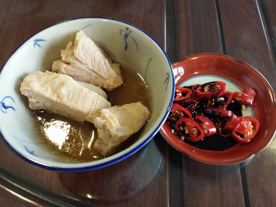 usually i used the $7.50/kg frozen pork ribs bought from chinatown market. last evening when i was at sheng shiong, decided to pick up a packet (about 700g) of fresh indonesian pork ribs at S$19/kg. they were good but very fatty & took shorter time to cook (about 40mins).