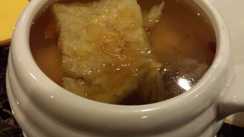#1 the mini buddha-jump-over-the-wall(bjotw) had a light decent soup base (not intense & maybe that was intended), a good flower mushroom, a quite small abalone which was ok & lots of chicken plus a cheap fish maw (not 花胶). i supposed average ingredients were quite ok if the soup was really tasty. it was not a bad soup. 1 of us commented any lie tong (例汤) soup of the day by tunglok or imperial treasure would beat this, so there was nothing much to say.