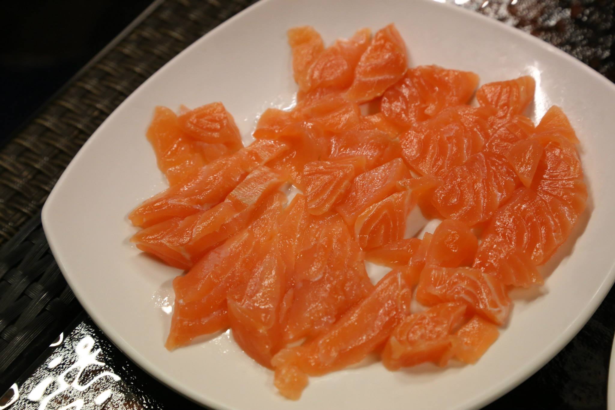 the very fresh salmon fillet was bought on the day itself & brined in salt & sugar solution for 4 hours. nice colour & tasty.