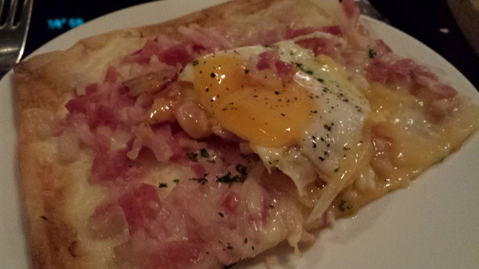 we ordered mostly their recommendations. the young server was very helpful. the crispy crust tarte flambe was the french answer to italian pizza? very crispy dough. onions gave it sweetness & the egg some texture. wife felt the cheese was not “pang” aka flavourful enough. overall, quite edible maybe average or above cannot really c/w a good pizza.