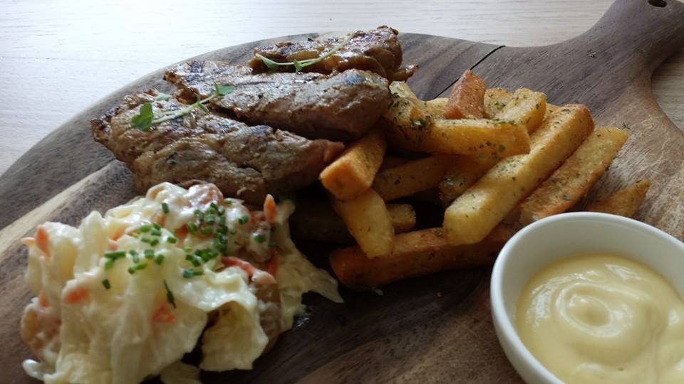 the pork collar had good consistent texture of sous vide. the chef is famous for his sous vide cuisine. the friend who took cold soba & i both commented that the pork collar was kind of lean. i personally would prefer it the usual fatty collar. the 2 other friends preferred it lean. 🙂 fries were good. mash/cold slaw? were good too. i didn’t take much of either.