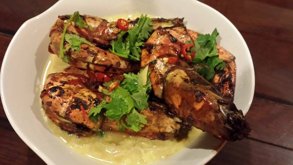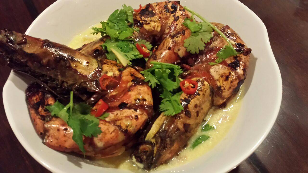 - cooke prawn – season de-veined prawns (keep in shell) with fish sauce & white pepper. fry cut chilli padi, ginger strips, & garlic in butter on high heat. add king prawns & chargrilled using the dry wok prawn method to get perfect char-grilled flavours & texture. set aside the cooked prawns.