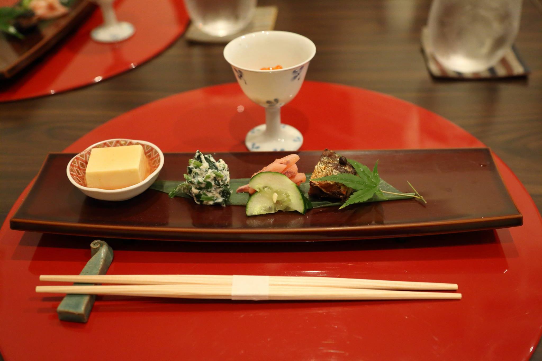 we had the first course sakizuke(先附) – a selection of small appetizers. it had a delicious pickled sanma (秋刀鱼), a equally delicious tofu, pickled ika (squid), some vege, and ikura on enoki in small bowl. really good! we were saying if every dish could be like this. they were, quite! maybe minus the rice. 🙂