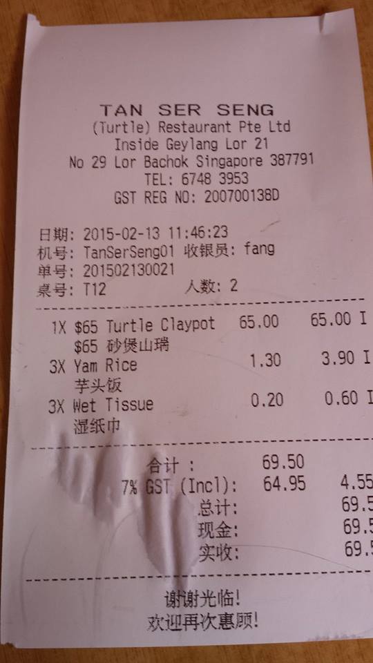 had turtle soup lunch with sis & bil at tan ser seng at geylang lor21 on 13.2.2015. 🙂