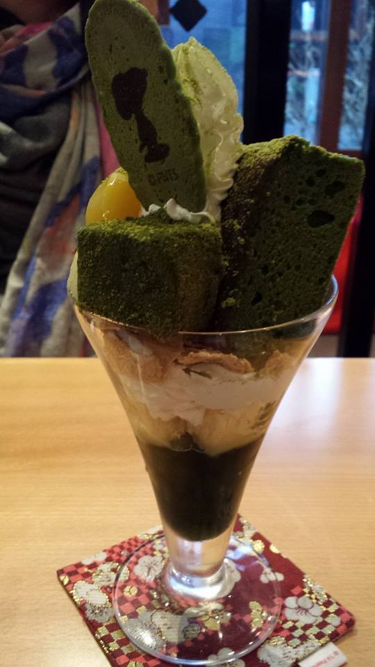 we had macha & the real thing – an excellent parfait, with green tea cakes, mochi, the brown dusted warabi mochi, caramelised chestnut, red beans, cornflakes etc etc. this excellent!