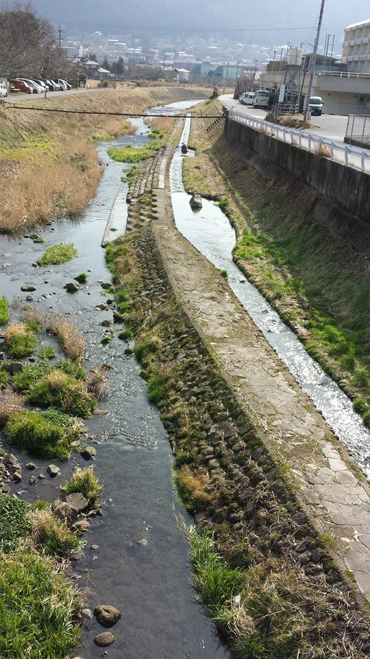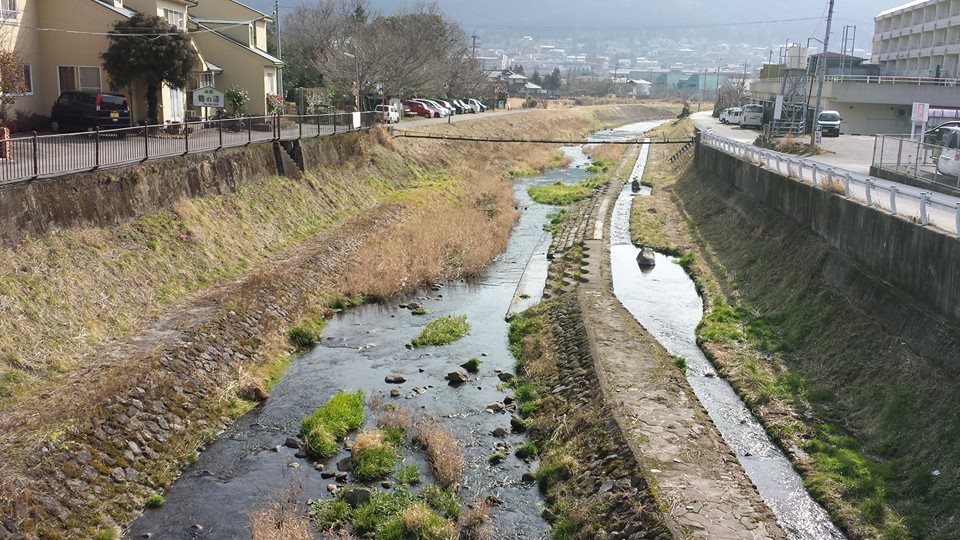 we past the 1/2 dried-up stream to yunotsubo kaido shopping street. the was just at the corner.
