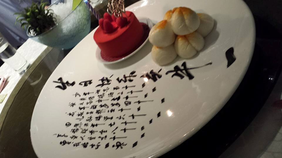 they were presented together with the cake mei mei bought, and handwritten “calligraphy” by a talented restaurant manager. haha!