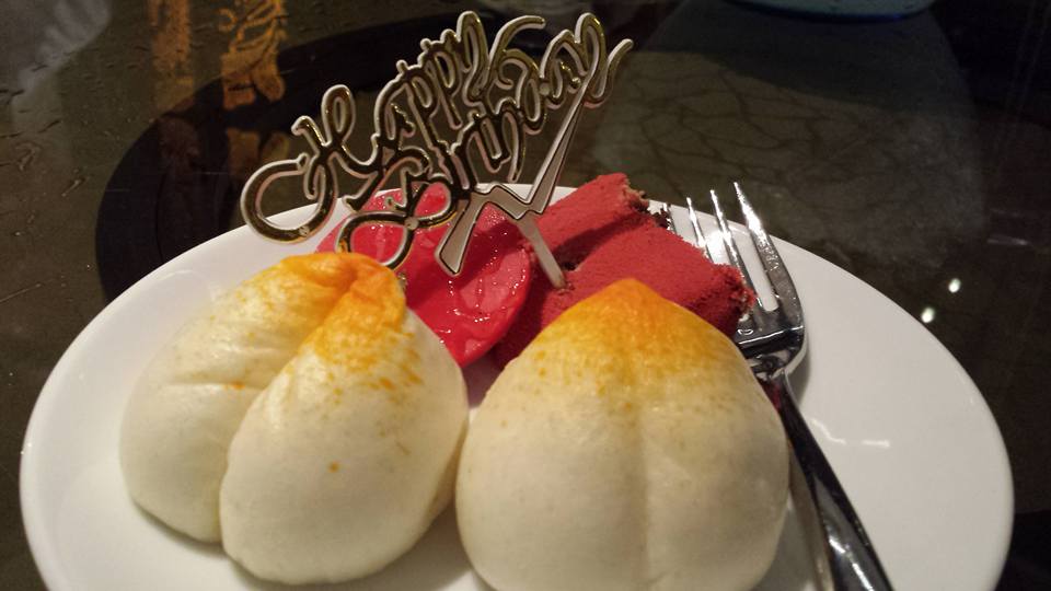 as it was a birthday, the restaurant provided complimentary longevity buns 流沙寿桃.