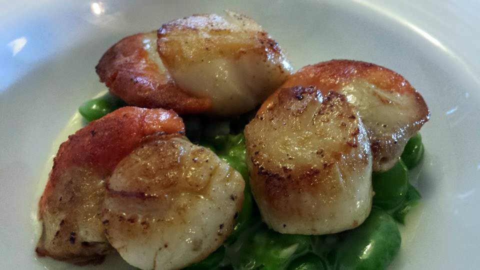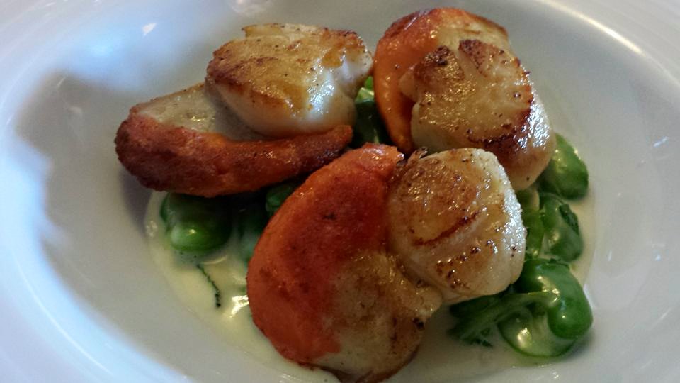 as before there was no menu & we just ordered from the blackboard, since they do their daily menu depending on what they got from the newlyn market. we each ordered a scallop. this time there was no scallops with apple sauce, which was excellent last time. the scallops were just as well done, and the broad beans were very sweet & combined well with the tasty scallops. still the scallop apple sauce last time was an unmatched experience.
