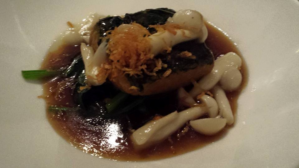 we had the elegant 三层楼, which is a tunglok’s long standing dish of fried bean curd on spinach & shimeji mushrooms.