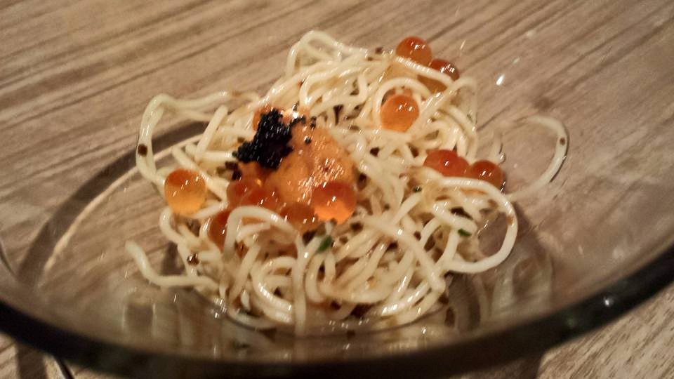 we started with the standard japanese salad with ponzu dressing which i always like. there were like 3 thin slices of wagyu, quite marbled & sweet i guess, not much impact.