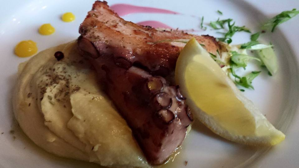 lobster was fresh, sweet, came with excellent garlic butter dip. & i liked the bbq flavours. 🙂 there were chips (fries) & greens.