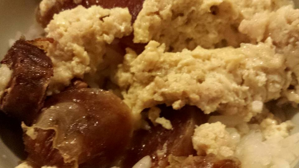 feeling lazy. decided to do a steamed egg with minced pork. it’s kind of like a chinese chawanmushi. 🙂