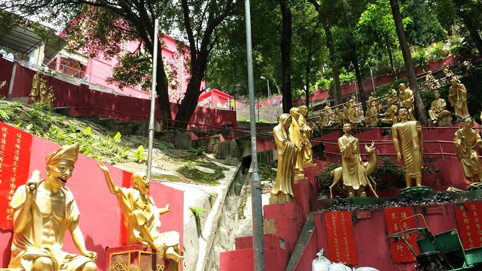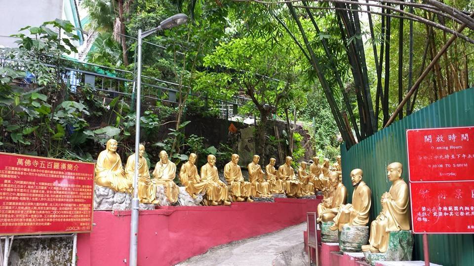 the uphill passage is lined on both sides with lohan statue me think?? all the way up man fat sze 万佛寺. 🙂