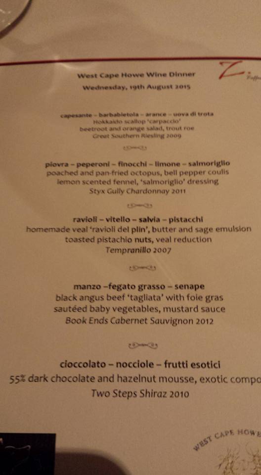 wife & i joined a group of friends for a west cape howe wine dinner at zafferano on 19.8.2015.^^