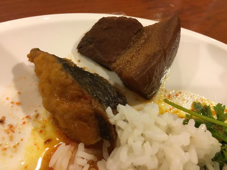 for second helping i heaped some chicken curry on my rice. a friend found it odd i was adding rice (even though it was just 1 tbsp each time). & i tried the sambal (very good) & sambal balacan (ok).