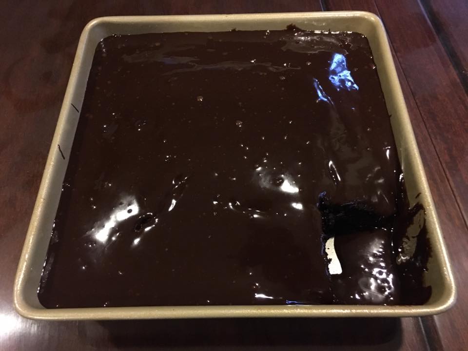 - when cake is completely cooled, add the ganache frosting. voila!