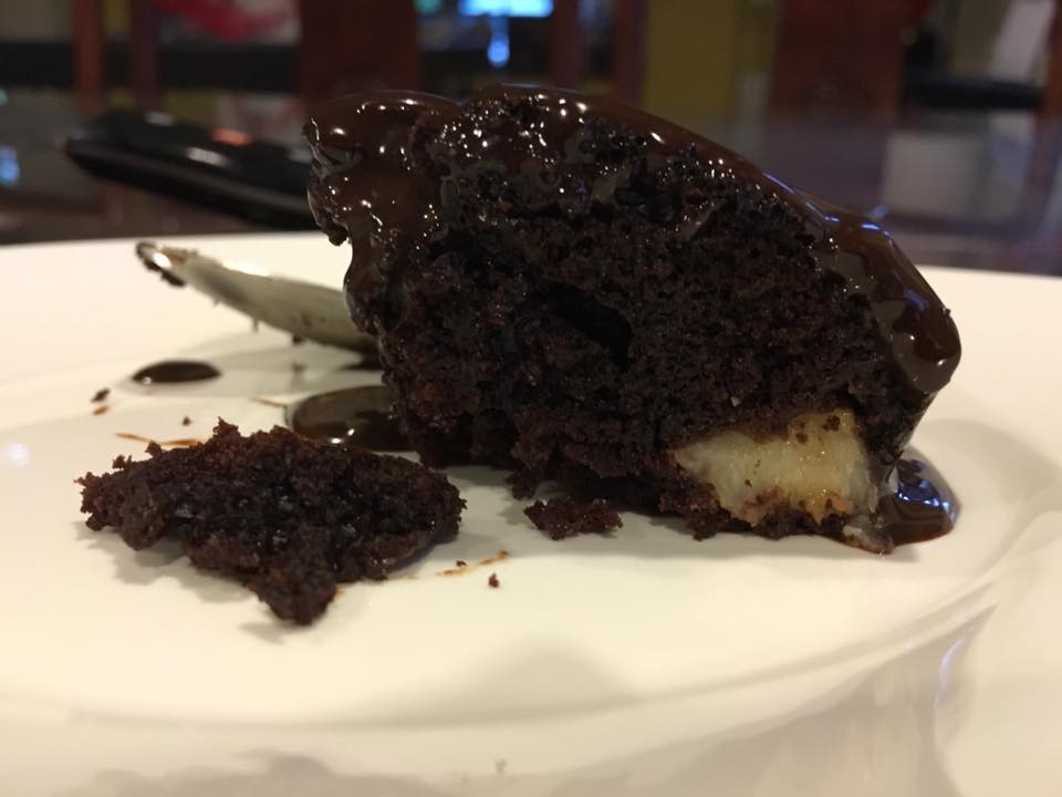 well it was pretty good la…chocolate cake standalone not really my favourite, but this was really jolly good. the ganache was specially good. the cake itself was dense but it was ok good.