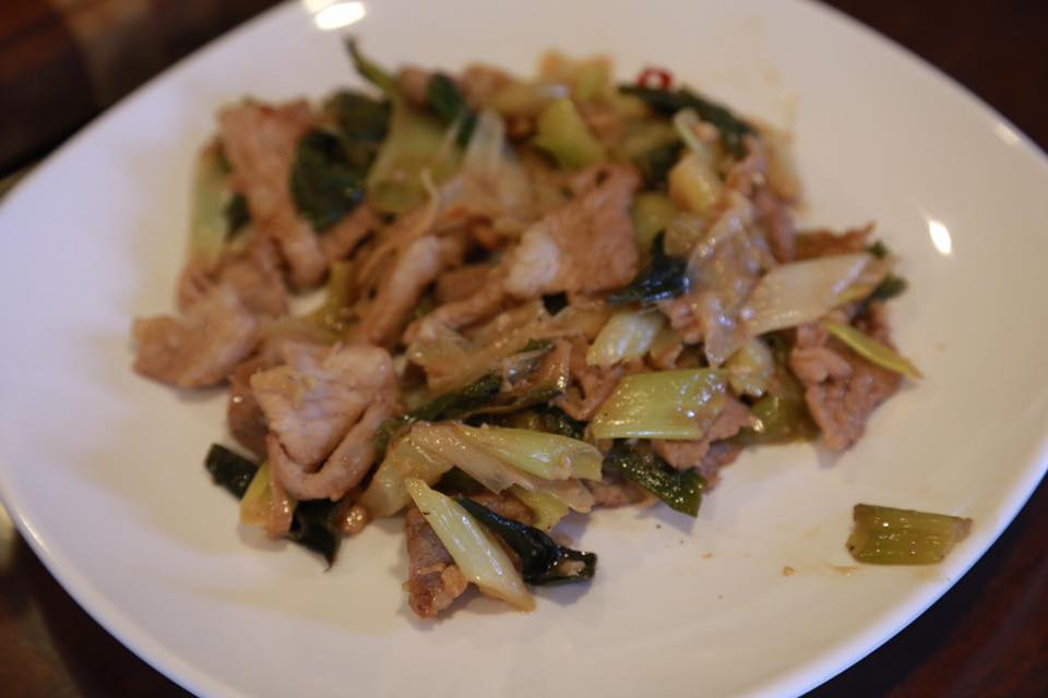 no vegetables in fridge so used the only leek left & cooked with leftover pork (sliced pork).