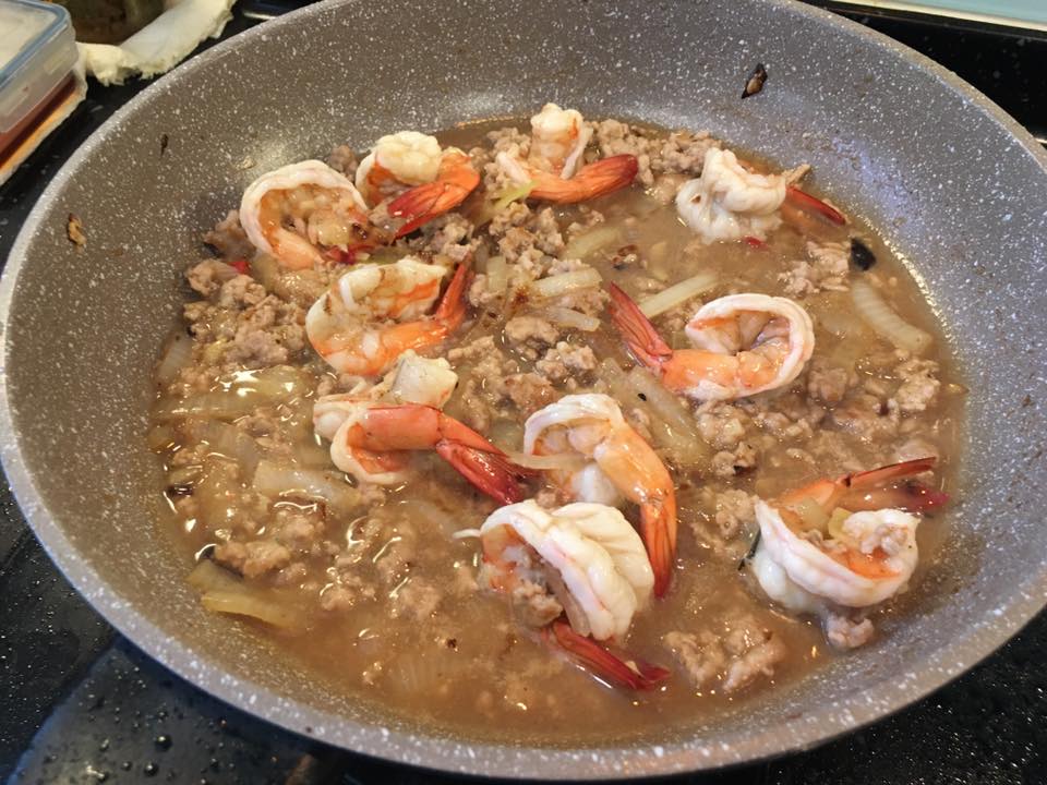 i did a minced meat prawn sauce with the usual oyster sauce & fish sauce & white pepper.