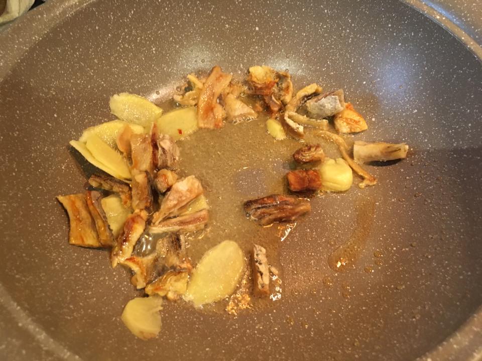 fried the sliced ginger & & salted fish first. added garlic fried till fragrant & not burnt.