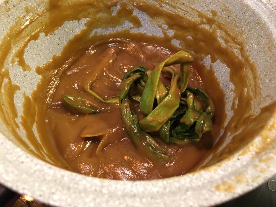 then pour back into pot with the remaining coconut milk mixture & boil (constantly stirring) till it thickens to the right viscous texture.