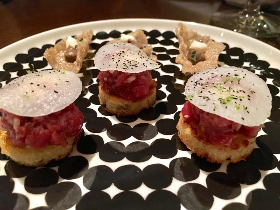 #1 snacks – toast of beef tartare + mushroom crackers