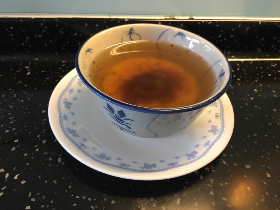 wife ordered the clear tomato soup. it had chickpeas & there was a spinach dumpling. quite nice soup.