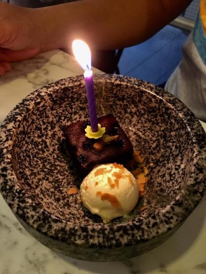 the chocolate brownie was good actually, not too sweet, a soft pliable texture, not hard. anyway I not so dessert person, so this just ok for me (in fact, I pass 1/2 the brownie & ice cream to our birthday boy).