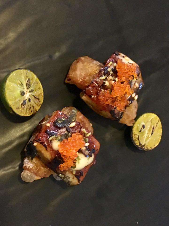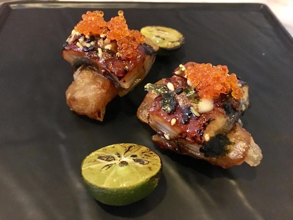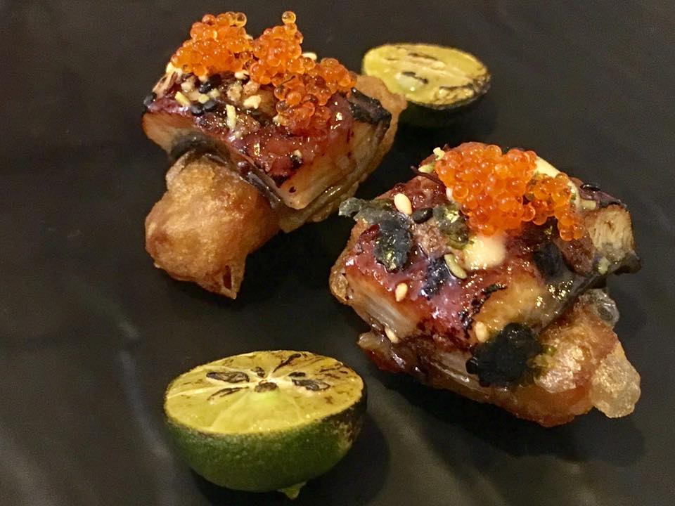it’s not a battered fish but aburi unagi topped with tobiko, atop a triple cooked potato.