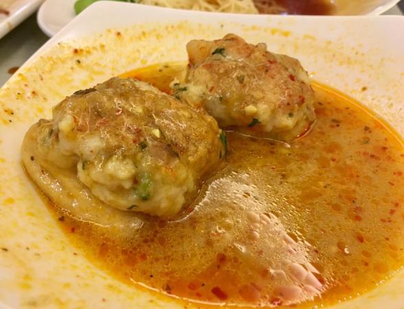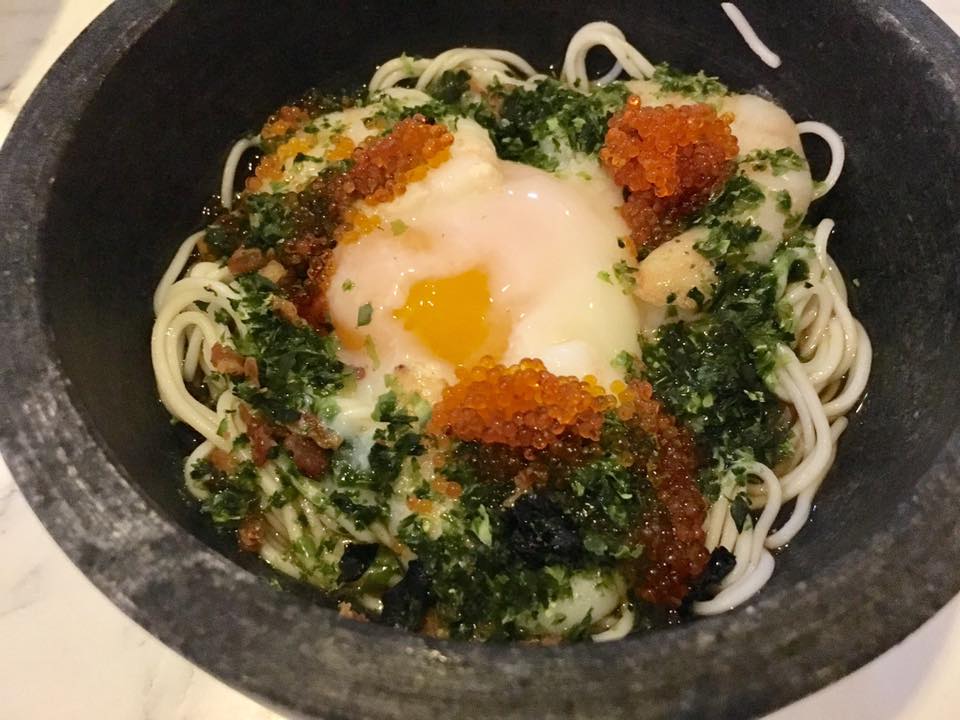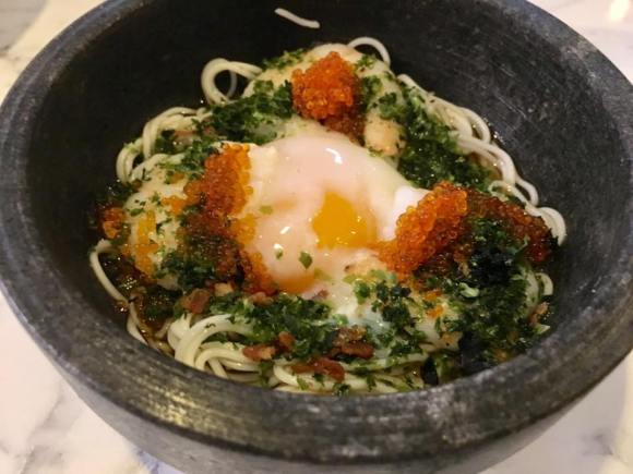 prawn noodles was somen with onsen egg, chilled prawns, prawn broth & tsuyu sauce.