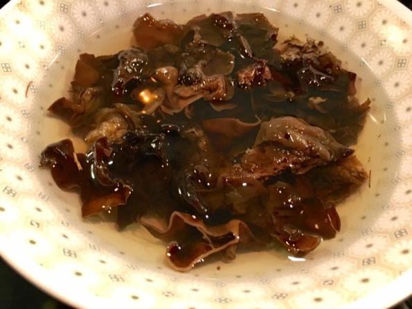 I also had some cloud fungus, which I soaked in water & cut smaller pieces using kitchen sears.