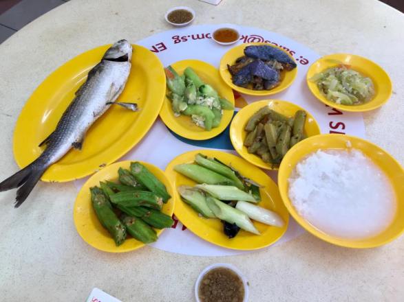 with 2 fish for S$18 and another 6 small plate vegetable & 1 porridge, total was S$23.60 for 2pax.