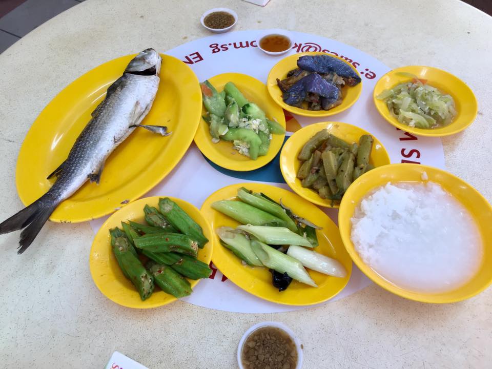 sis ordered a teochew chilled mullet 冻乌鱼 (S$9) and 6 vegetable dishes + one porridge for S$14.60.